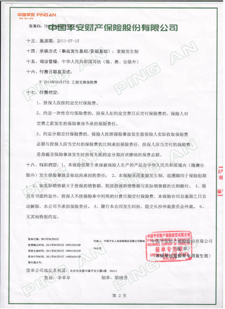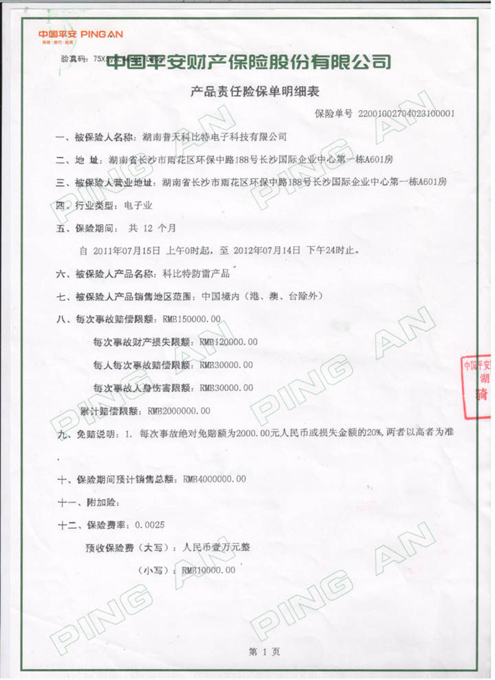 中國(guó)平安保險(xiǎn)質(zhì)量全程承保防雷產(chǎn)品
